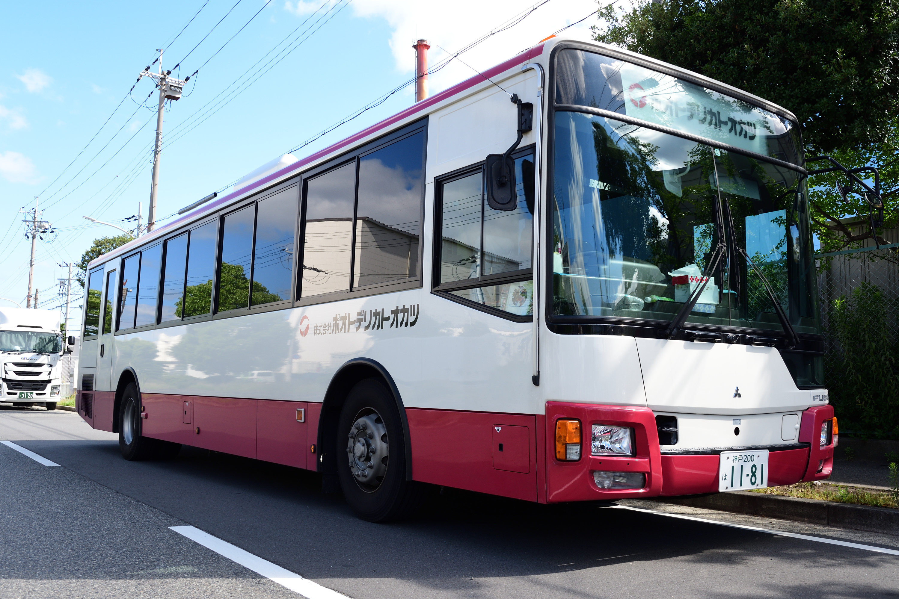 従業員の方にご利用いただくシャトルバスを当社事業場(本社・神戸工場・神戸東灘工場・東大阪工場)の最寄駅から就業・退社時刻にあわせて無料で運行しております。
